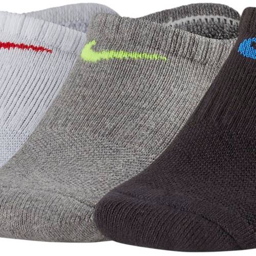 Dětské kotníkové ponožky Nike PERFORMANCE CUSHIONED NO-SHOW TRAINING SOCKS (3 PAIRS) K jsou vybaveny technologií Dri-FIT, která dobře odvádění vlhko a pot. Ponožky mají zonální odpružení ve špičce a patě pro maximální komfort při každém kroku. Lycra® spandex je 2 krát tlustší než předchozí verze. VÝHODY: Technologie Dri-FIT vám pomůže zůstat suchu a pohodlí. Tlumení v klíčových zónách na špičce a patě. Prodyšná síťovina v horní části nohy pro lepší ventilaci. V balení tři páry.