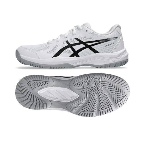 Sálové boty ASICS Upcourt 6 GS jsou navrženy pro hráče, kteří vyžadují lehkou trakci a spolehlivou oporu během dynamických halových zápasů. Jsou ideální pro sporty jako volejbal, badminton a squash a nabízejí pohodlí a sebevědomí i ve vysokém tempu. Svršek je vyroben z lehké síťoviny, která zajišťuje správnou cirkulaci vzduchu a zabraňuje přehřívání nohou během cvičení. Zesílené panely na přední a boční straně boty poskytují dodatečnou oporu a chrání před rychlým opotřebením. Tato konstrukce umožňuje větší volnost pohybu a kontrolu při každém kroku. Odolná gumová podrážka nezanechává šmouhy a poskytuje dobrou trakci na různých halových površích, čímž zajišťuje stabilitu a bezpečnost během hry. Stélka je vyrobena procesem barvení v roztoku, který ve srovnání s tradičními metodami snižuje spotřebu vody a emise oxidu uhličitého, díky čemuž je tento model šetrnější k životnímu prostředí. ASICS Upcourt 6 je spolehlivá bota pro ty, kteří chtějí spojit pohodlí s výkonem a moderním stylem na jakémkoli hřišti. Lehký model nabízí flexibilitu a pohodlné nošení. Rozsáhlé síťované panely nabízejí měkký pocit a lepší padnutí. Překryvy ve střední části chodidla poskytují oporu a zlepšují stabilitu při pohybu ve všech směrech. Špička a pata jsou vyztuženy odolnými panely pro větší odolnost. Stélka je vyrobena speciální metodou barvení v roztoku, která snižuje spotřebu vody přibližně o 33 % a emise oxidu uhličitého přibližně o 45 % ve srovnání s běžnými technologiemi barvení.