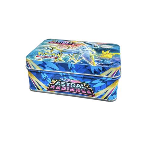 Pokémon Sword and Shield – Astral Radiance je edice ze Sword and Shield série sběratelské karetní hry Pokémon. V boosteru najdete 10 náhodně namíchaných karet z celé edice a díky těmto kartám si můžete vylepšit svůj herní balíček nebo vaši sbírku karet. Rozšiřující doplňkový balíček nabízí hráčům možnost, jak si rozšířit a vylepšit balíček nebo sbírku o nové karty. Je vhodný jak pro začátečníky, tak ostřílené hráče. Uvnitř balení obsahuje 40 náhodných karet. Tvrdá kovová krabice. Karty jsou v angličtině. Edice Sword and Shield – Abstral Radiance, obsahuje více než 190 karet včetně 18 nových Pokémonů-V, 15 silných Pokémonů-VMAX. Někteří Pokémoni jsou opět obohaceni o nové bojové styly Rapid Strike a Single Strike a nově se vrací dračí typy. Z Pokémonů V zde najdete: Leafeon V, Trevenant V, Volcarona V, Gyarados V, Glaceon V, Arctovish V, Dracozolt V, Espeon V, Golurk V, Sylveon V, Medicham V, Lycanroc V, Umbreon V, Garbodor V, Rayquaza V, Noivern V, Duraludon V, Suicune V. Z nových a silných Pokémonů VMAX zde najdete: Leafeon VMAX, Trevenant VMAX, Flareon VMAX, Gyarados VMAX, Vaporeon VMAX, Glaceon VMAX, Jolteon VMAX, Dracozolt VMAX, Espeon VMAX, Sylveon VMAX, Lycanroc VMAX, Umbreon VMAX, Garbodor VMAX, Rayquaza VMAX, Duraludon VMAX.